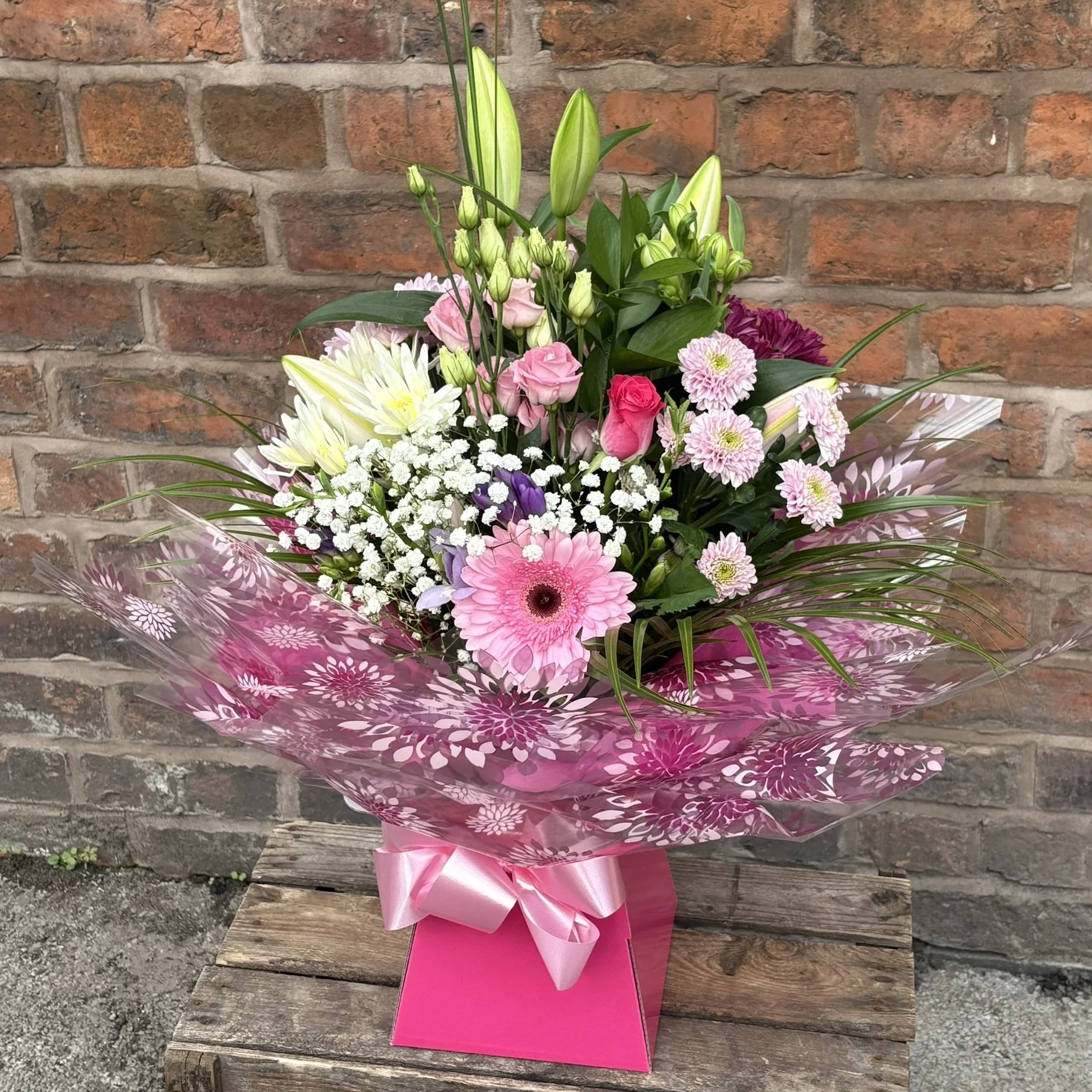 Dry Hand-Tied - Deluxe Pink Lilies & Hydrangeas